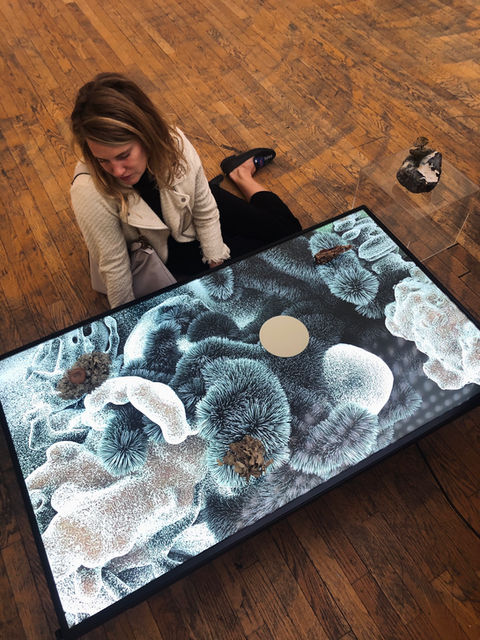The Grammar of Lichens provides a dive into a life of lichens – bizarre and complex living forms emerging from the symbiotic partnership of two separate organisms, a fungus and an alga. Through a series of high-resolution digital images and 3D prints, collided with lichens collected in Lithuanian forests, I experiment with dramatically different logics of genesis, change and growth. By mashing designed, imaginary and real species, the exhibition faces us with the present and future of our own environments and bodies, which can no longer be observed through the orthodox divide between organic-inorganic, human-nonhuman, digital-analogue.